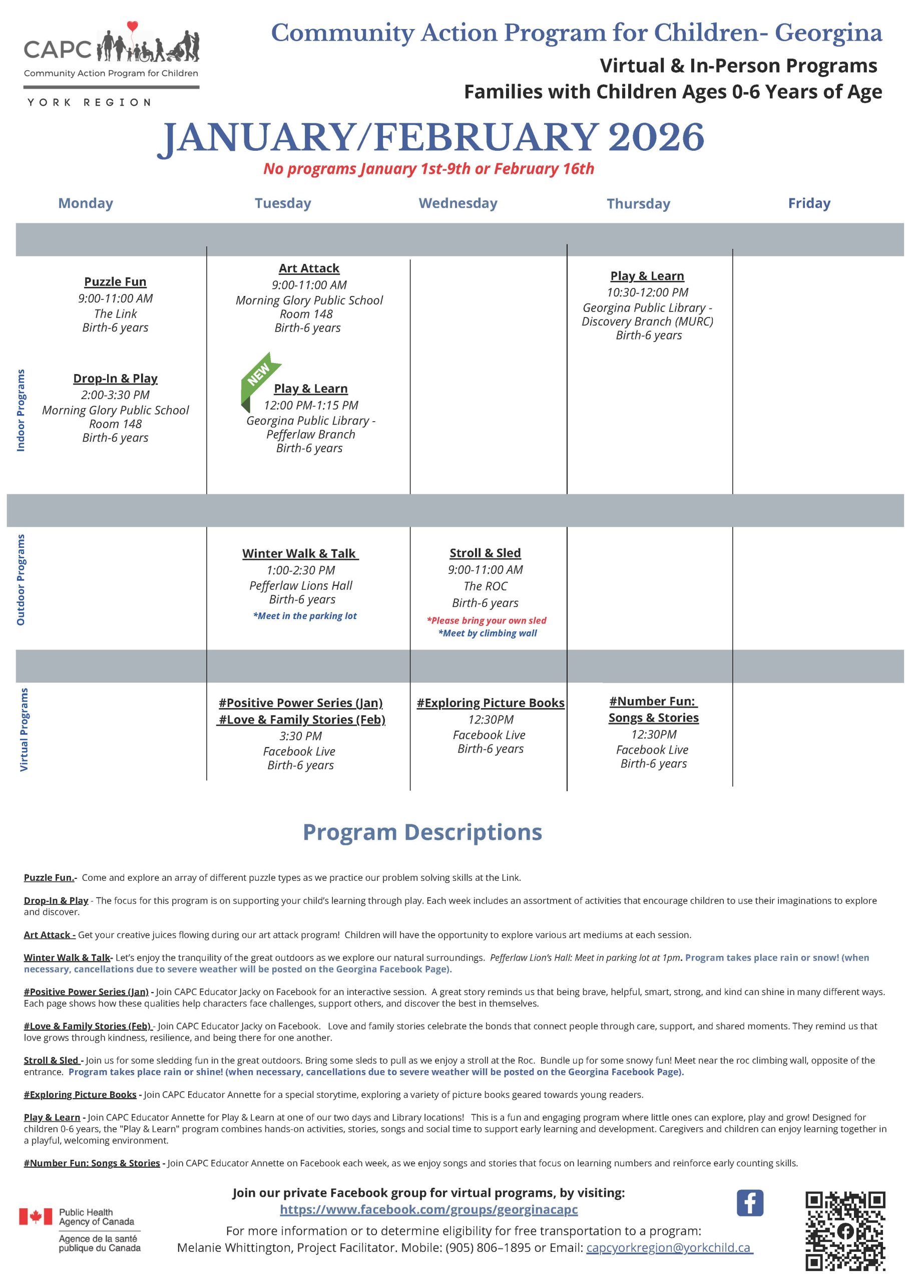 children 0-6 years, the “Play & Learn” program combines hands-on activities, stories, songs and social time to support early learning and development. Caregivers and children can enjoy learning together in a playful, welcoming environment